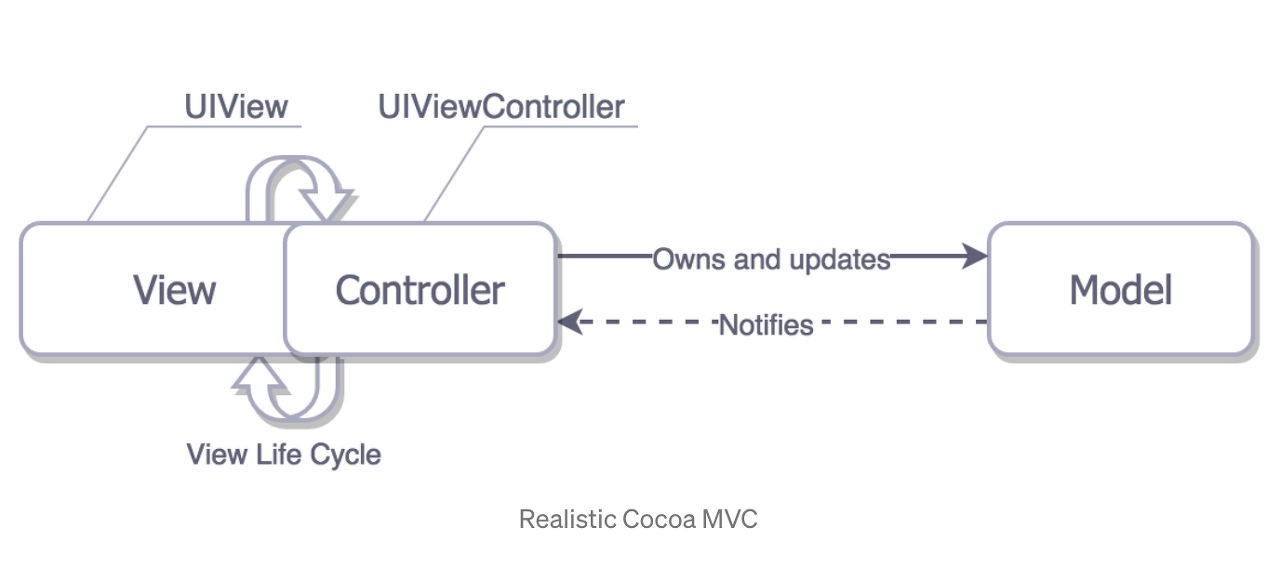 View와 Controller가 너무 밀접하게 연결되어 있다. ViewController처럼 View와 Controller가 붙어 있으며, Controller가 View의 Life Cycle까지 관리하기 때문에 View와 Controller를 분리하기 어렵다. 이렇게 되면 재사용성이 떨어지고, 유닛 테스트를 진행하기 힘들다. 또한 대부분의 코드가 Controller에 밀집될 수 있다. Life Cycle 뿐만아니라 delegate나 datasource 관리, 네트워크 요청, DB에 데이터 요청 등 많은 코드가 Controller에 작성되면 Controller의 크기는 비대해지고 내부 구조는 복잡해진다. 복잡해진 코드는 프로젝트 규모가 커질수록 유지보수를 힘들게 한다.